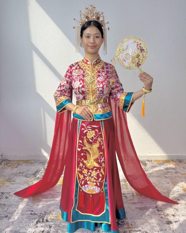 Baju Cina - Puteri Hang Li Po - Merah Hijau Embroidery - Saiz M