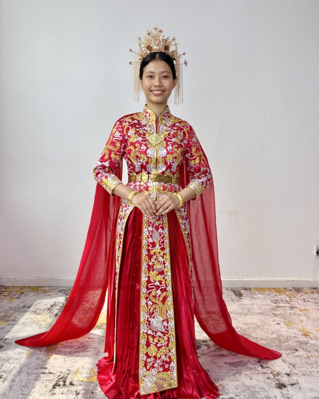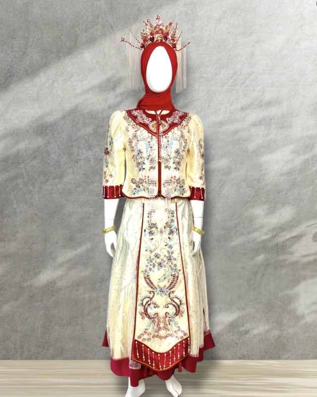 Baju Cina - Puteri Hang Li Po - Cream Red Sequin - Saiz 2XL