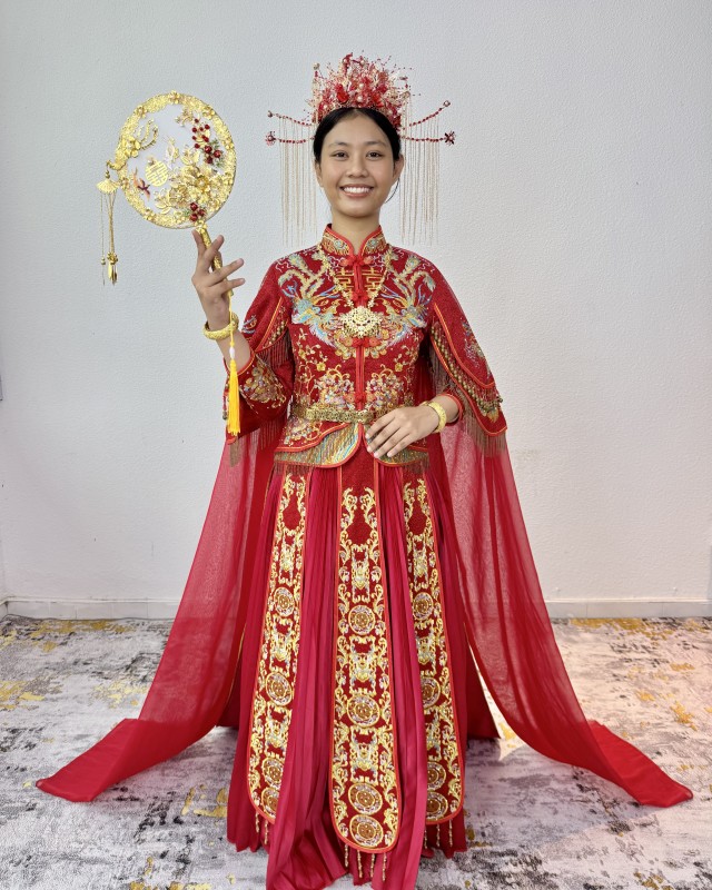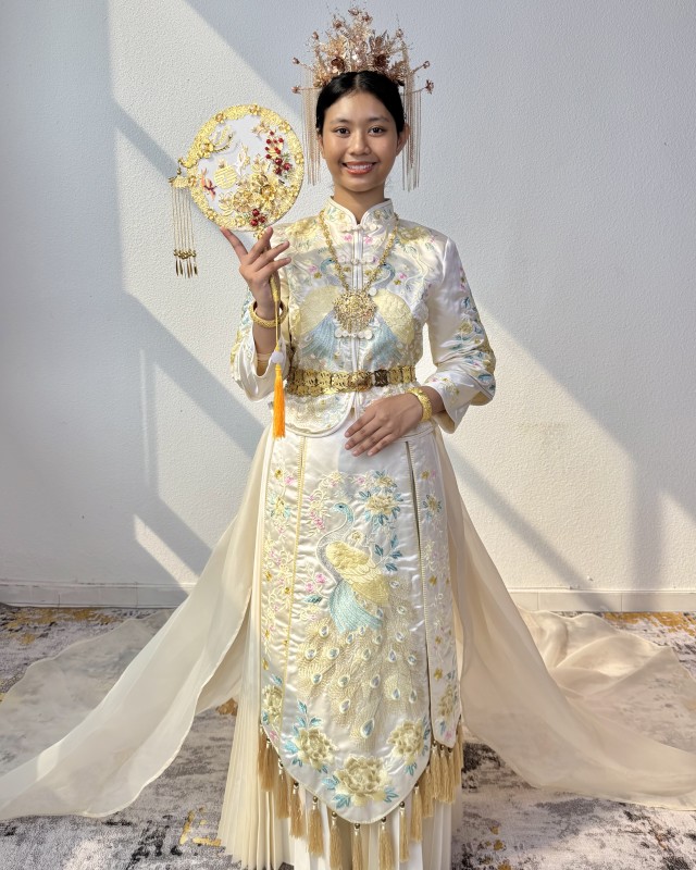Baju Cina - Puteri Hang Li Po - Cream Gold Sequin - Saiz XL