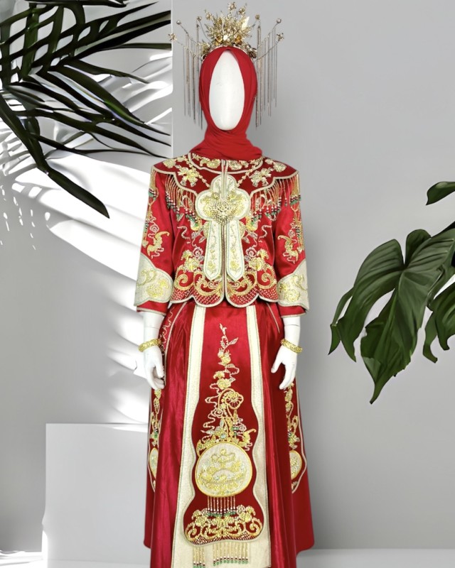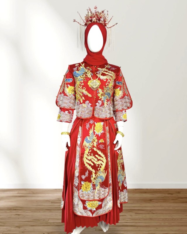 Baju Cina - Puteri Hang Li Po - Merah Gold Embroidery - Saiz 2XL