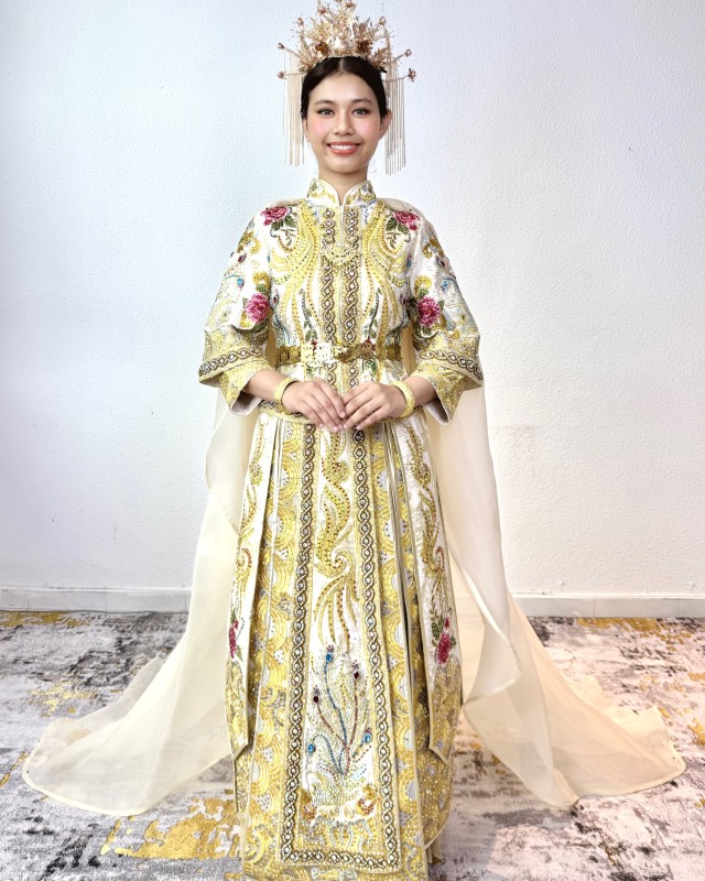Baju Cina - Puteri Hang Li Po - Cream Gold Embroidery - Saiz 3XL