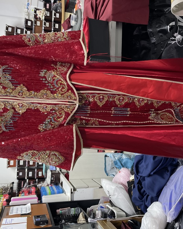 Baju Cina - Puteri Hang Li Po - Merah Sequin - Saiz 3XL