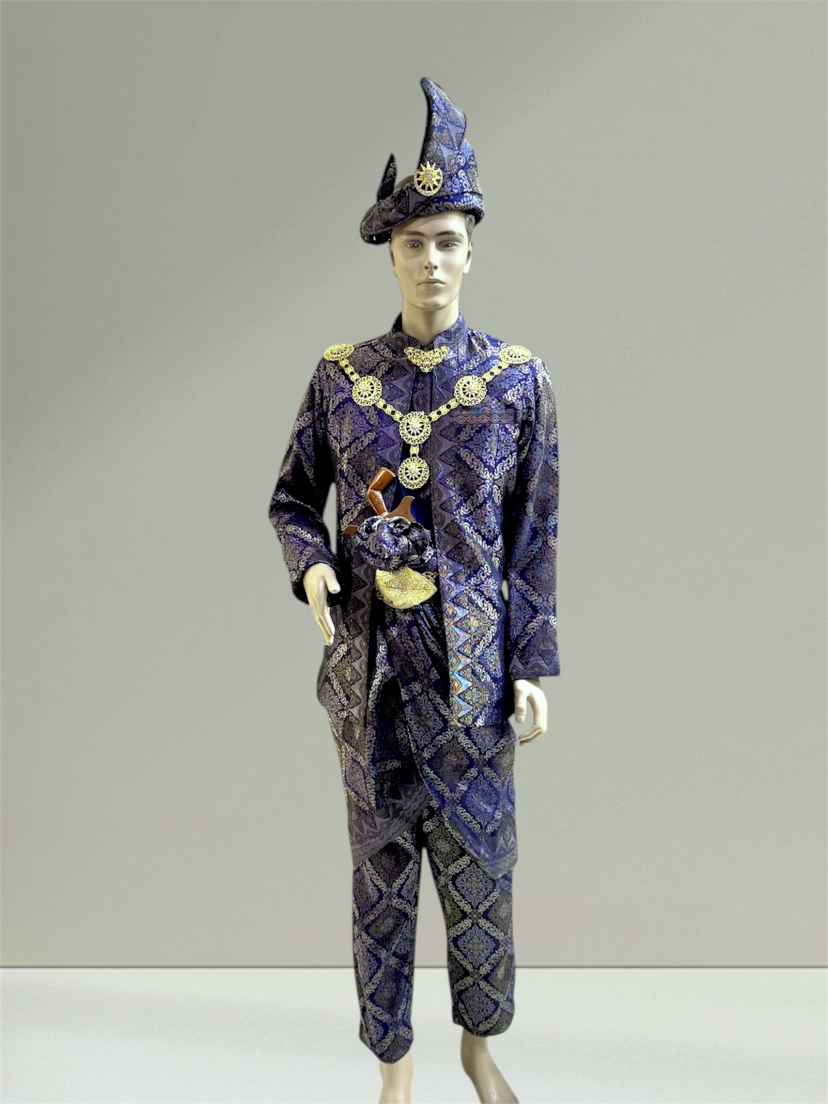 Baju Pahlawan Melayu Songket Tenun - Navy Blue - Saiz XL