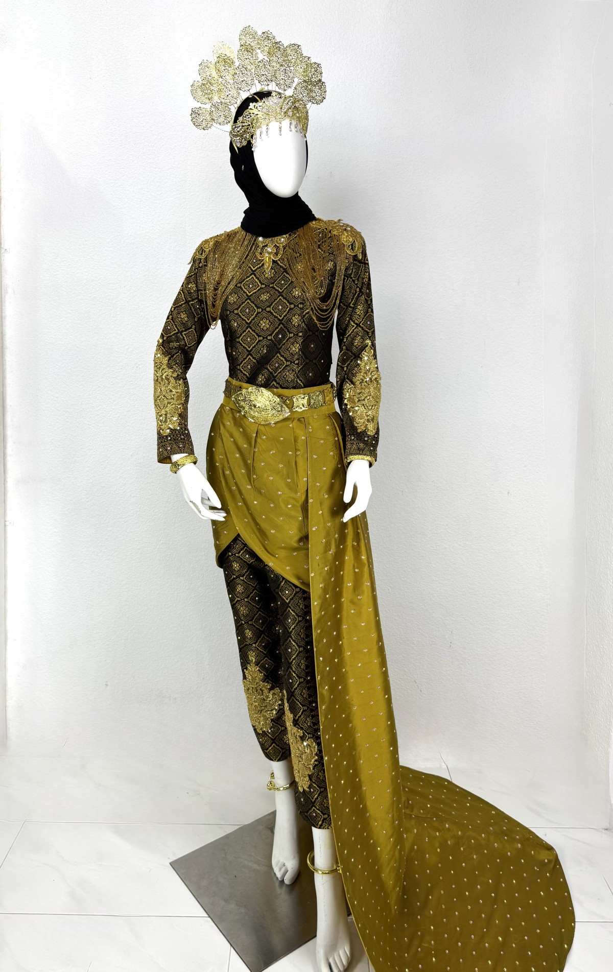 Baju Puteri Perak Songket Tenun- Hitam Gold - Saiz S