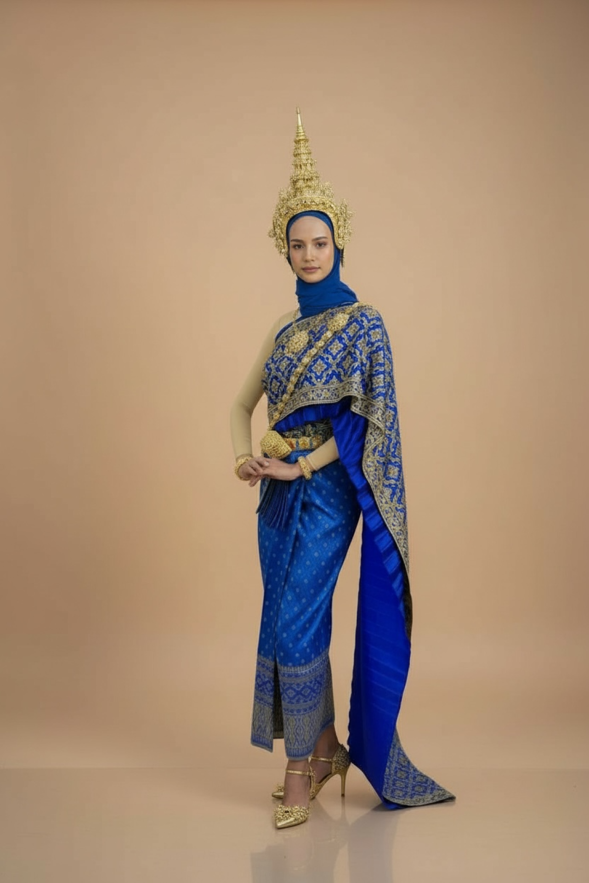 Baju Puteri Thailand- Biru Gold - Saiz L to XL