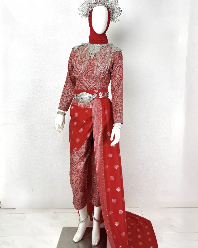 Baju Puteri Perak Songket Tenun - Merah Cili - Saiz S